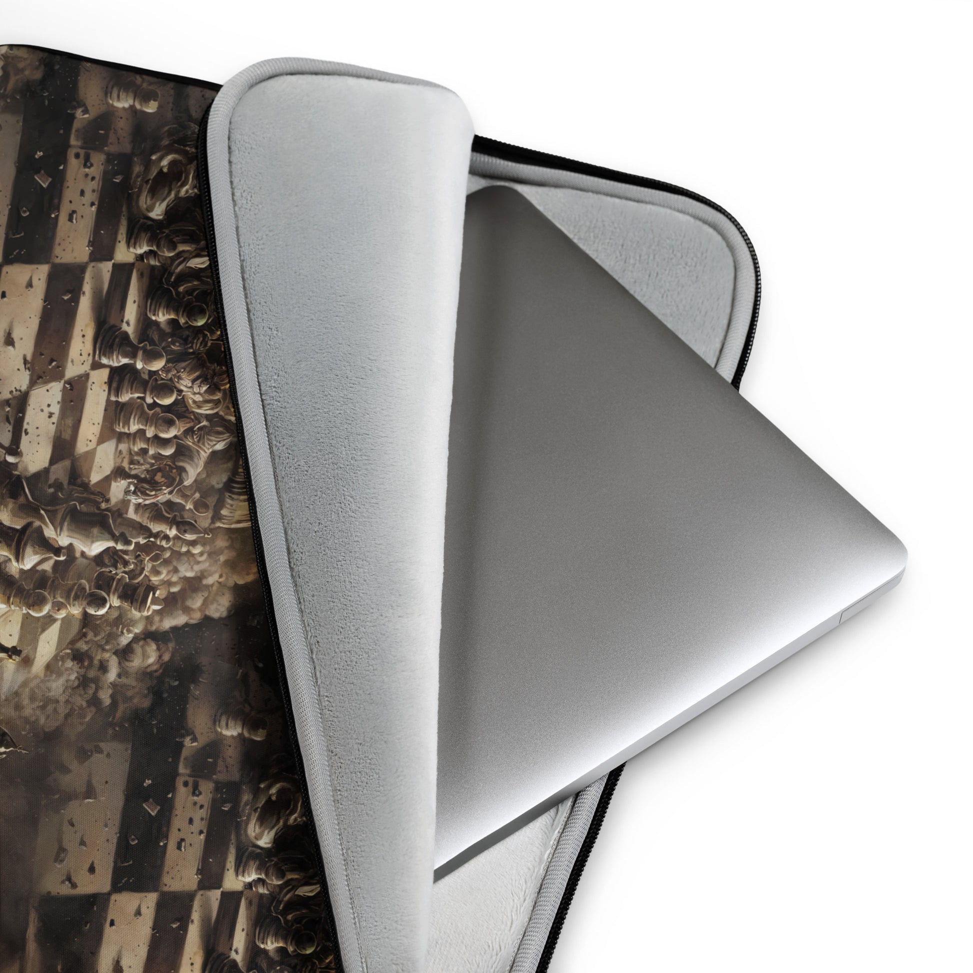 Protégez votre ordinateur portable avec style grâce à la housse “Chess Moves”. Inspirée du monde des échecs, cette housse élégante est conçue pour les joueurs et passionnés de technologie qui cherchent à allier fonctionnalité et esthétisme. Avec un design ajusté, elle s'enroule parfaitement autour de votre appareil, tout en offrant une protection optimale contre les rayures et les petits incidents du quotidien. La doublure en fausse fourrure douce préserve votre ordinateur, tandis que son matériau résistant à l'eau garde vos affaires à l'abri des éclaboussures.
